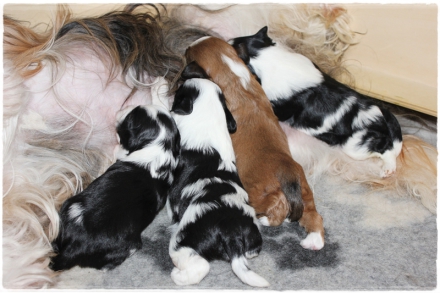 Nun ist schon die 1. Woche rum und unser Prinzenkind hat sich super entwickelt. Er hat sein Geburtsgewicht richtig verdoppelt und liegt in seiner Wurfbox glücklich uns zufrieden. Man hört ihn nicht und sieht ihn nicht. Mama Freyja wärmt I`Thso, putzt ihn und liegt die ganze Zeit bei ihren kleinen Bub. Besser kann es wirklich nicht laufen.