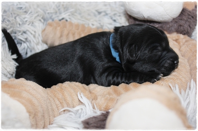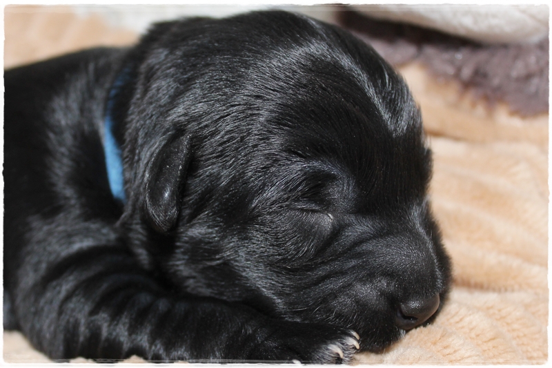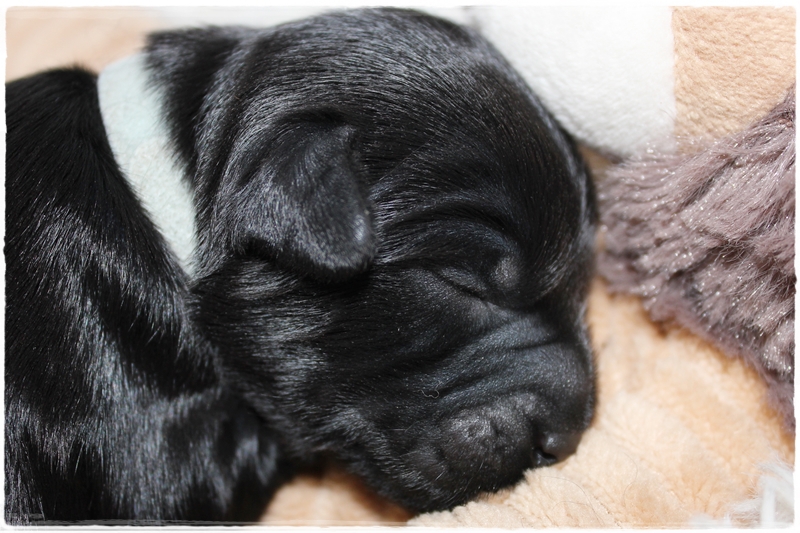 Rüde dunkelblau:  Farbe  schwarz mit weißen Brustfleck    Geburtsgewicht. 240g