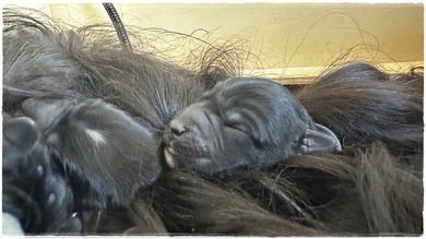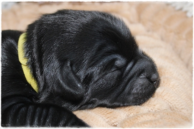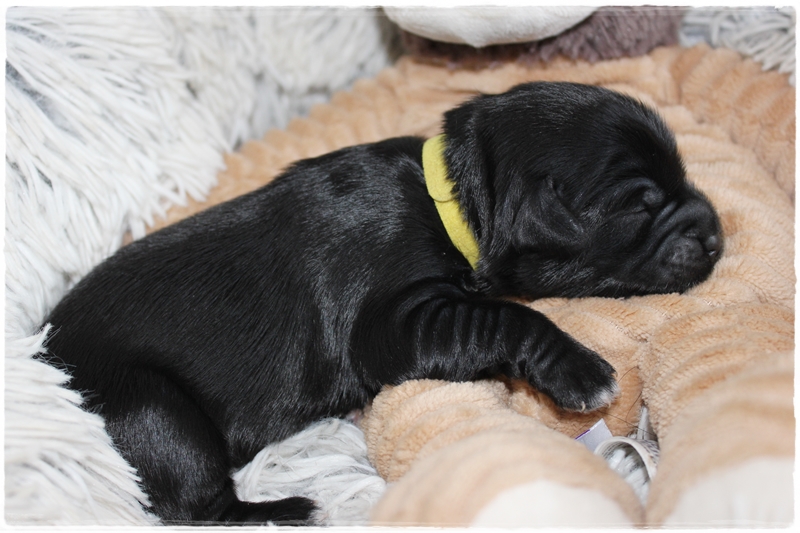 Hündin gelb:  Farbe schwarz mit weißen Brustfleck,    Geburtsgewicht: 232g