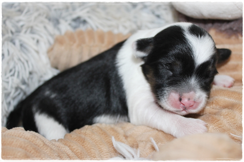 Hündin ohne Band:   Farbe tricolor    Geburtsgewicht: 218g