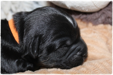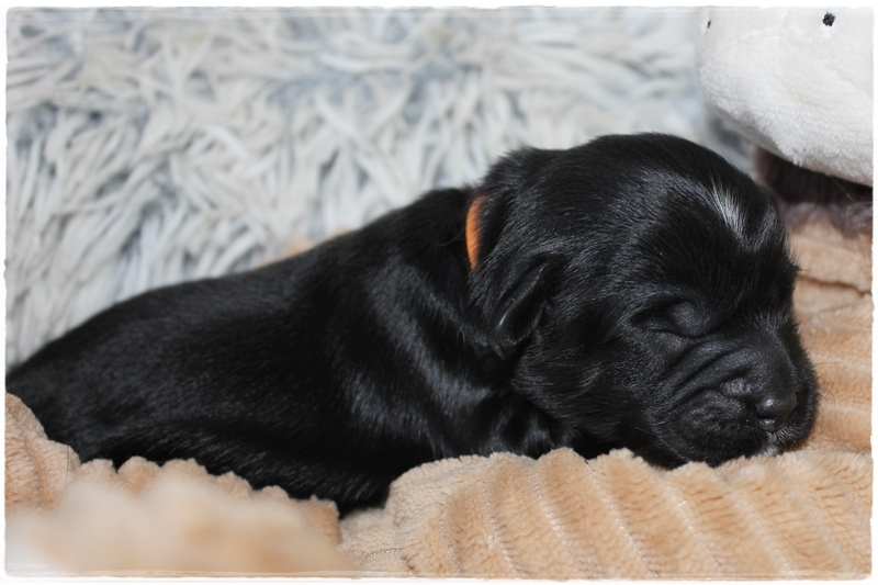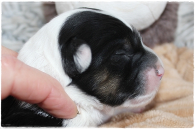 Hündin rot:    Farbe schwarz mit weißen Brustfleck   Geburtsgewicht: 225g